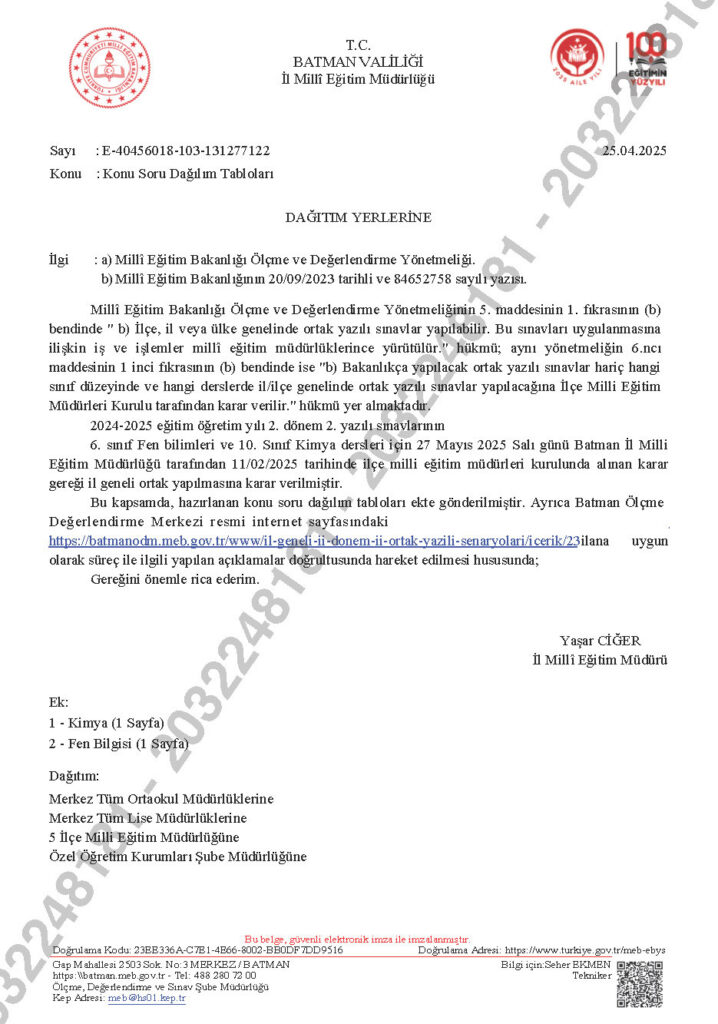 2025 2.Dönem Ortak 2.Yazılı Sınavları